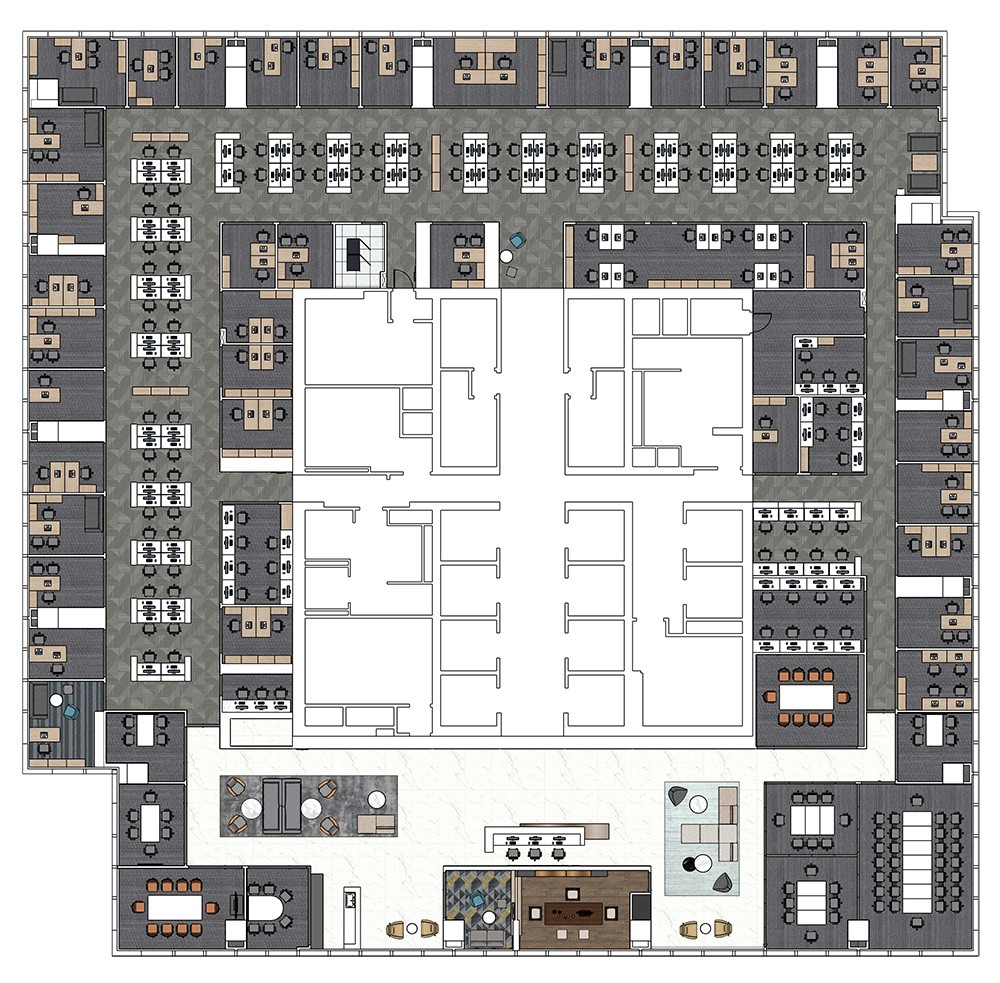 新的空間猶如一張空白紙張,它可以轉化一切,可以讓設計團隊靈感自由釋放,創造一個心靈渴望的空間。設計團隊與客戶緊密合作,通過品牌元素的創新表達去體現樂府互娛非凡的品牌文化。工作區規劃包括固定的辦公區、同時配有靈活/協作的區域可供工作和休閑、以及各種形式的私密專注空間/會議室。