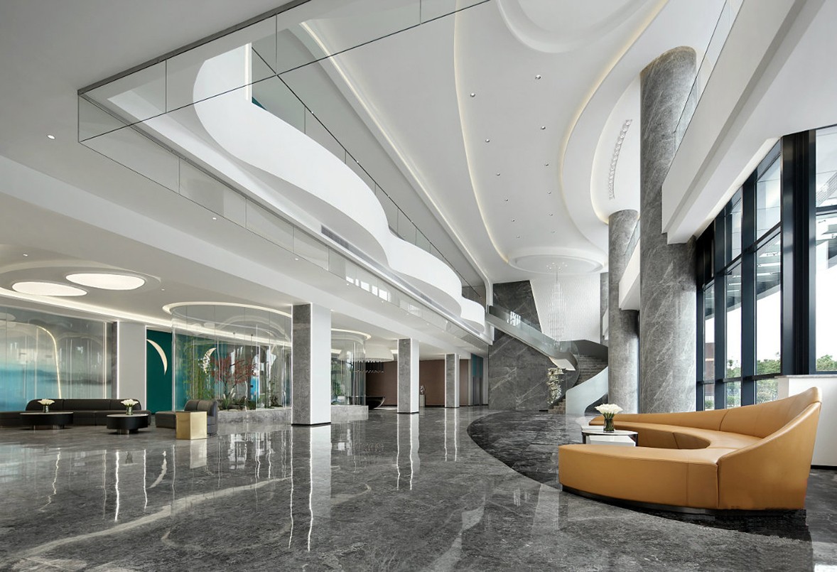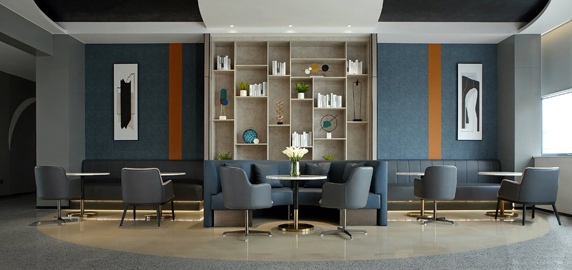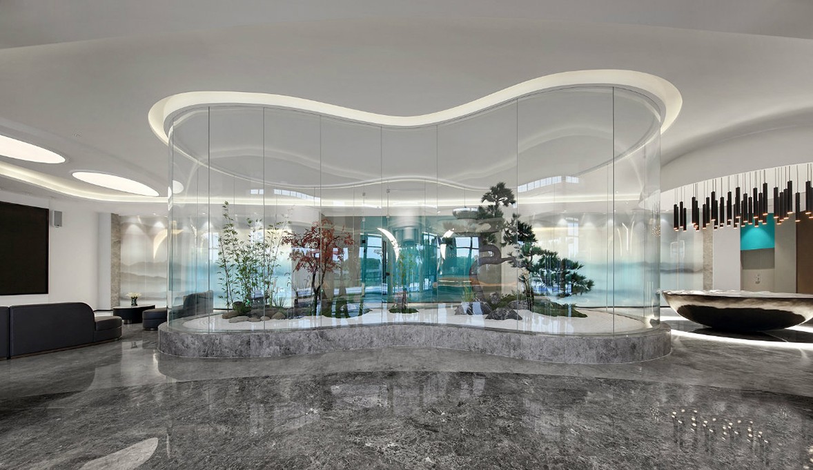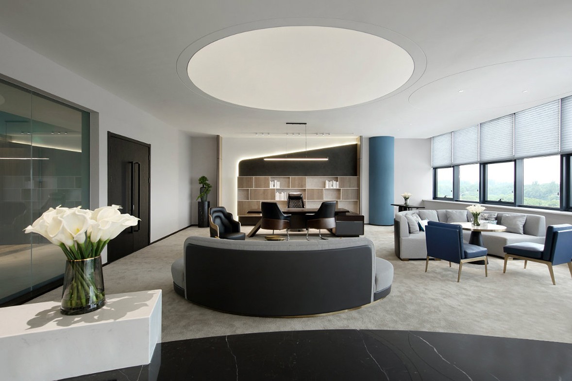 The meeting room and the water bar are the core of the space, thus forming a loop of movement. There are different paths for guests and employees to enter the company. Employees can enter the office area from the side entrance more effectively by swiping their cards. Visiting guests need to surround the periphery of the meeting room to enter the company area. This design allows guests to visit the company's projects and part of the display of crafts and materials along the way, allowing visitors to better understand the company's various aspects of business capabilities. The deepest part of the space is the most important office area. One side is by the window, and the other side is planned as a negotiation room, where small meetings and exchanges can be more convenient. For office space planning, we allow employees and leaders to have a certain distance and separation between the office space, so that they can devote themselves to work more relaxedly.