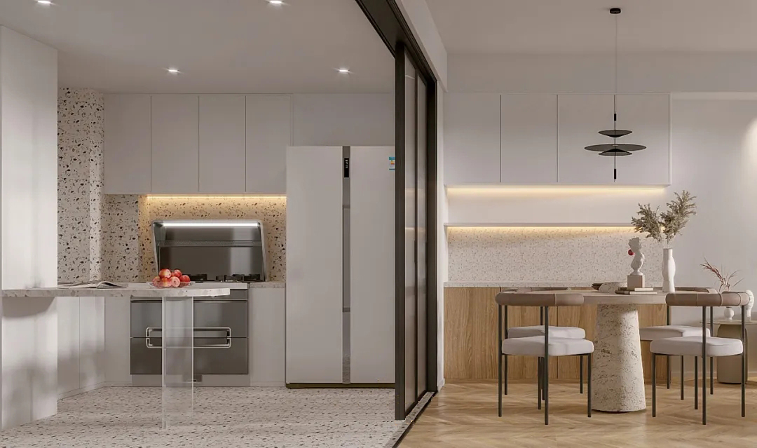 The large-scale floor-to-ceiling glass window design of the living room and open study room introduces the river view into the room. Any decoration is not as beautiful as the nature endowed by nature. Here, there is no need to deliberately shape it, it is already beautiful Heart. Whether it’s sunrise or sunset, spring, summer, autumn or winter, all the scenery has been moved into the house, and the owner who lives in the beautiful scenery is so happy.