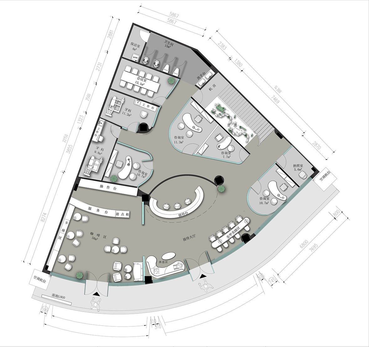 In the field of design, light and shadow are the soul of building space art and an important means of creating space atmosphere. Louis Kahn, an architect who is good at designing with the aesthetics of light and shadow, believes that everything in the world is light and can project shadows, and shadows belong to light. Projecting natural light and shadow into the building can realize the tranquility and light of the building itself. The clever use of natural light in interior design helps to strengthen the pure texture of the space, enhance the taste and connotation of the space, and also play a role in energy saving and environmental protection. In this project, the glass curtain wall realizes the communication between internal and external spaces. Natural light can shine through the glass curtain wall into the interior, making the open style space more transparent and bright.