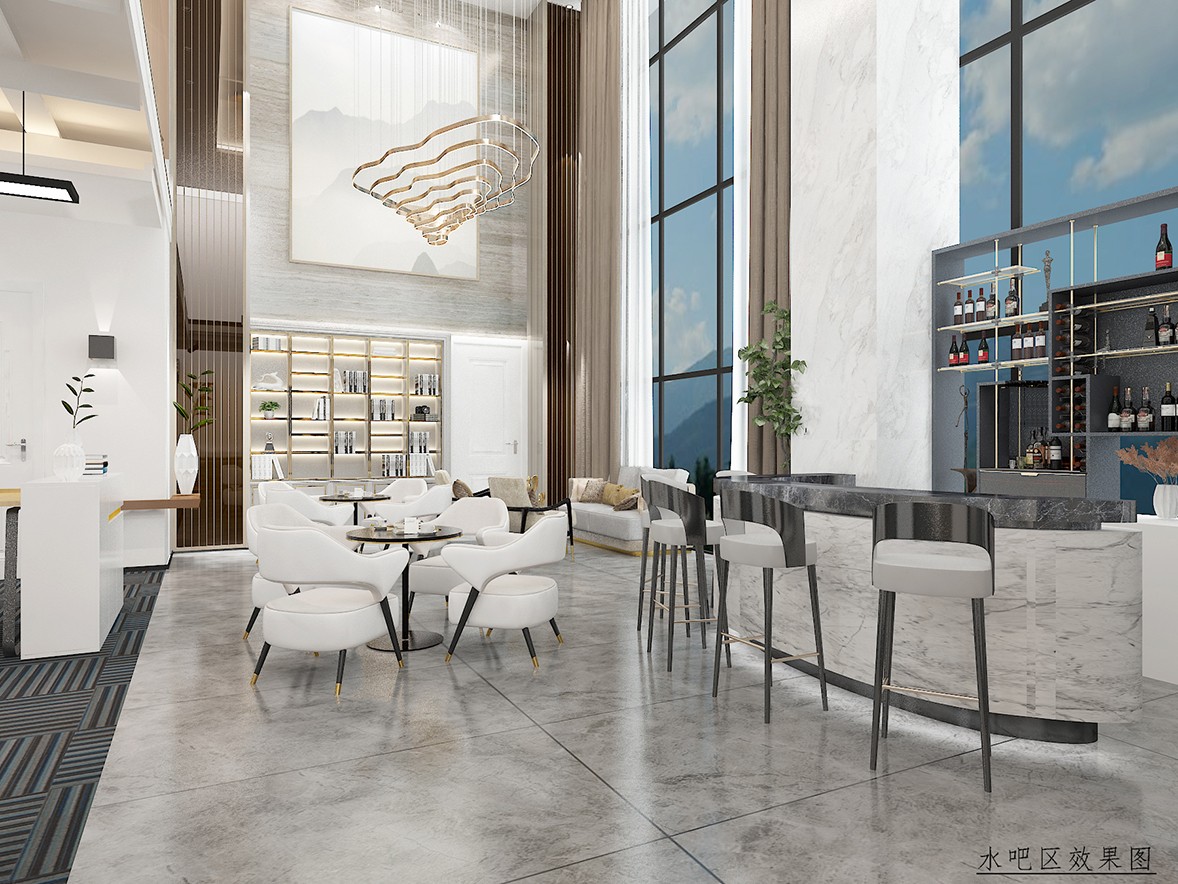Accepting the shape of nature, the meaning of building space, the smooth and elegant curve of the front hall is like the shape of water, spirit and softness, conveying the rhythm of life and the natural texture of free wood color, bringing a calm and introverted look like a wise man with great success , The lower the key, the clearer you are. When a breeze comes, refreshing, refreshing and fluent lines make the paintings. Pure and simple black gives birth to a simple atmosphere, and white brings concentrating thinking. The two circles represent coexistence. The cooperative relationship of coexistence and mutual dependence creates a kind of energy flow in space through different colors, shapes and forms